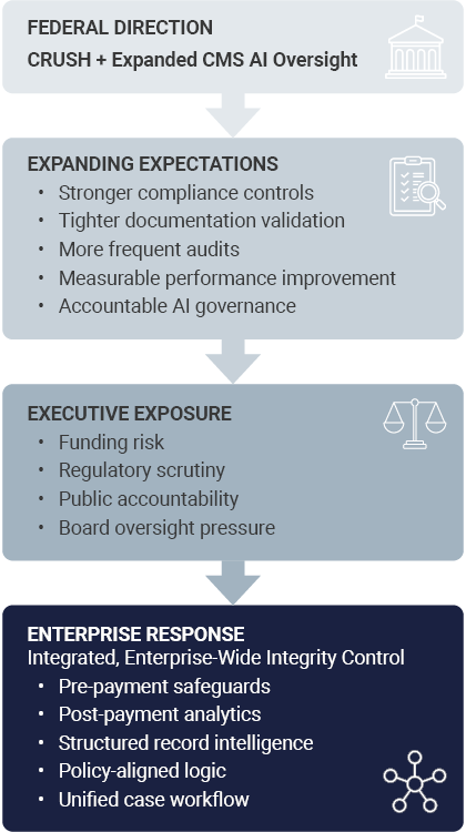 Recent actions by the Centers for Medicare & Medicaid Services, including the Comprehensive Regulations to Uncover Suspicious Healthcare initiative and expanded artificial intelligence oversight, signal a measurable shift in how program integrity performance is evaluated.